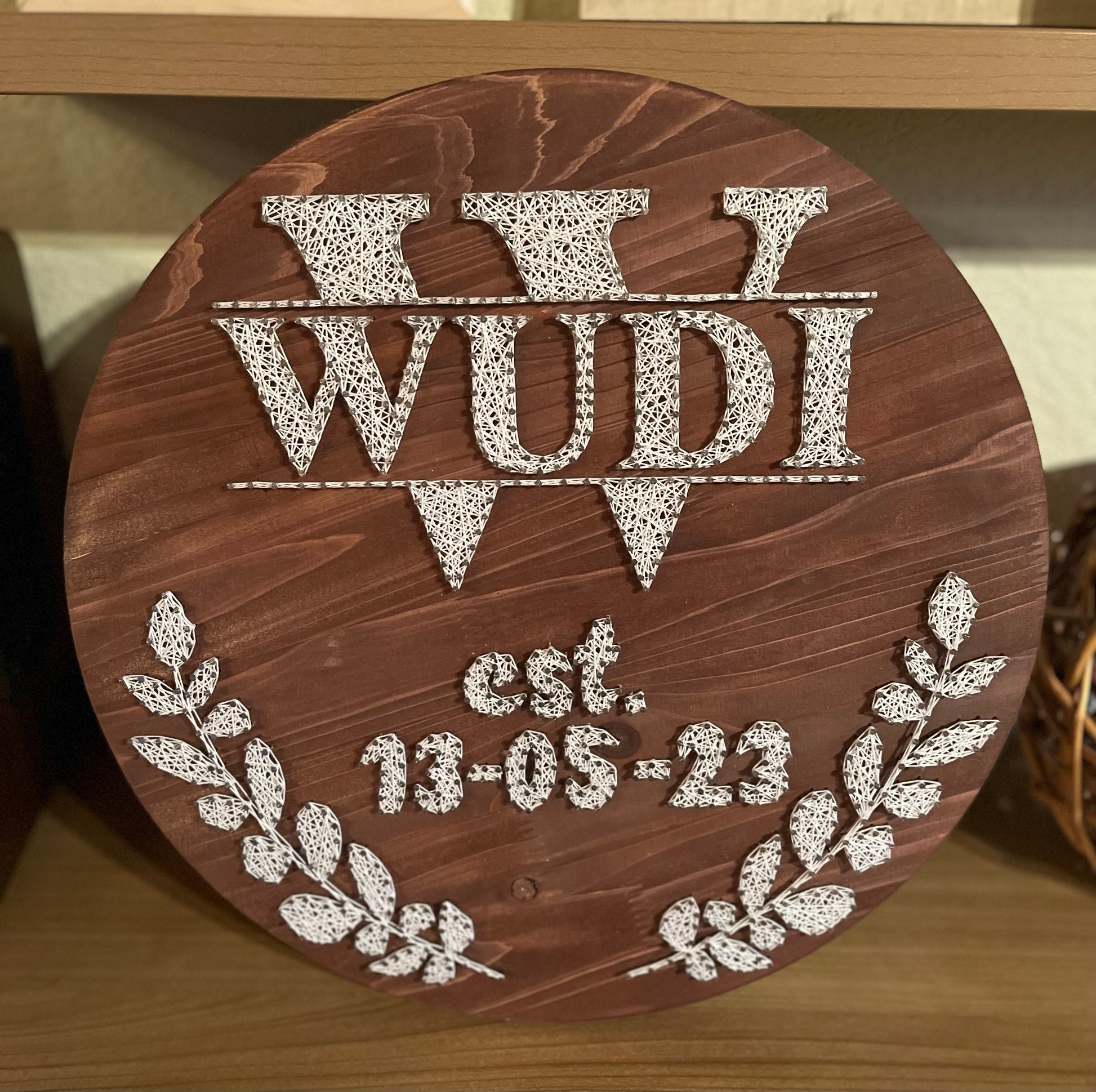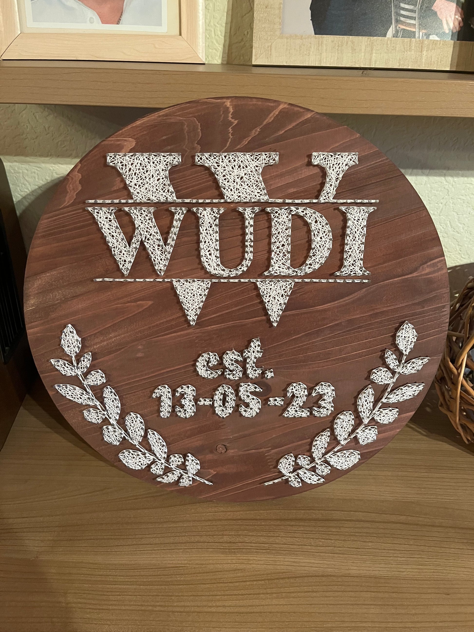 String Art "Familienschild" auf Holz - Fadenbild