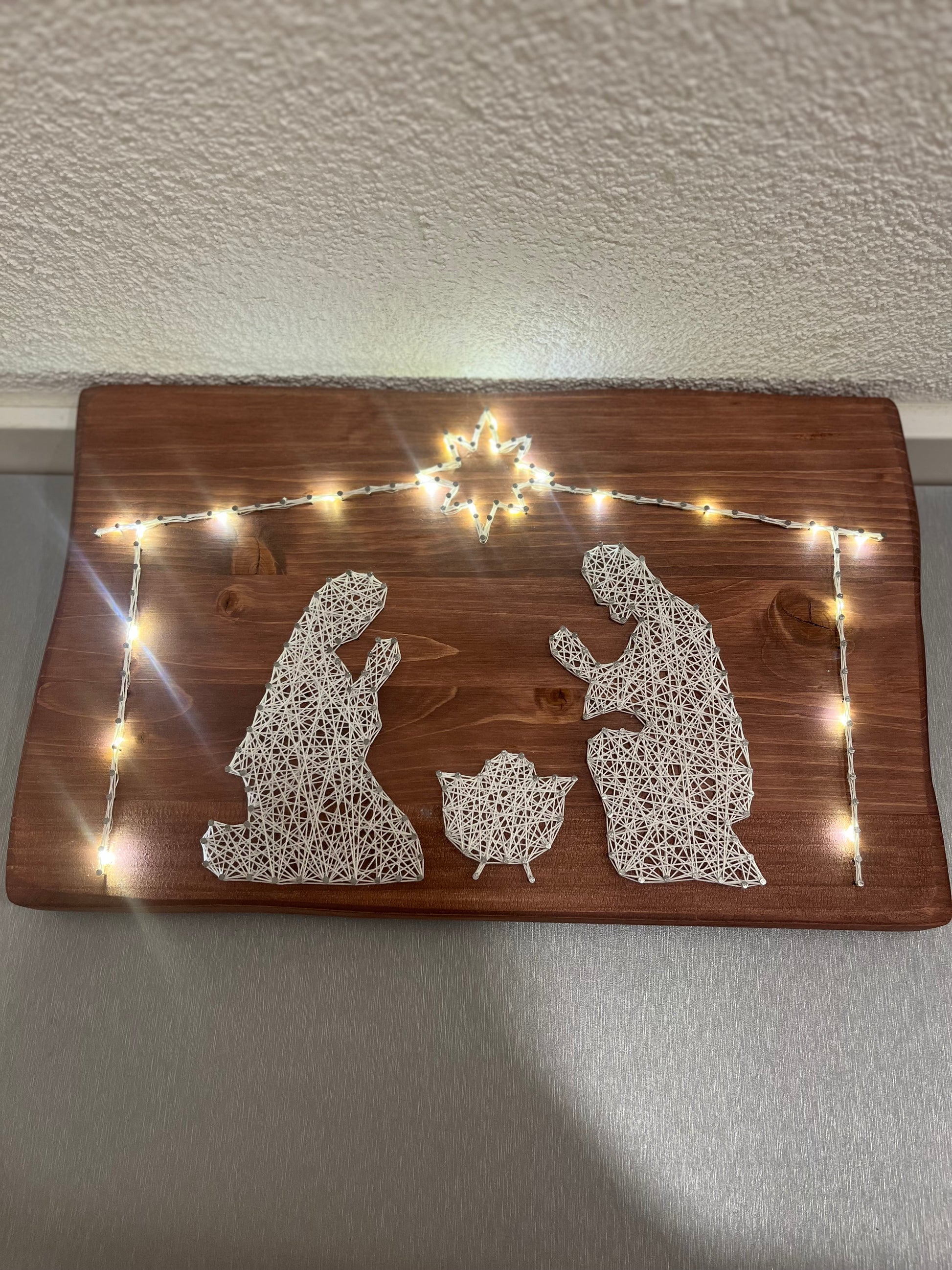 String Art "Krippe" auf Holz - Fadenbild